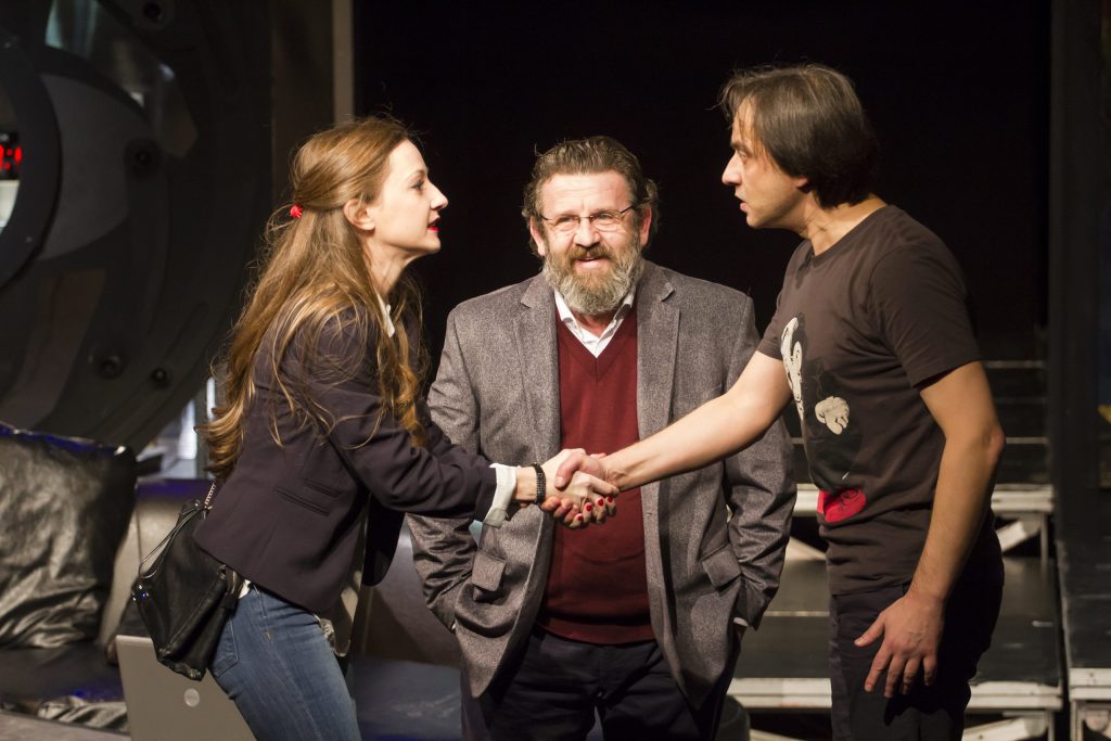 Regizorul a alcătuit ”distribuţia de aur”, cu Alina Berzunţeanu, în rolul principal, pe care ori de câte ori o văd, îi descopăr noi faţete ale talentului ei, Marius Stănescu, în rolul lui James Dodd, uluitor în orice apariţie (fie că e vorba de texte ”grele”, semnate de Shakespeare, Calderon de la Barca, Brecht, Heiner Muller, Caragiale, Oscar Wilde sau texte mai “subţiri”), implicat total în fiecare cuvânt rostit, în fiecare gest, în fiecare mişcare. Adrian Titieni, în rolul lui Richard Erlich, este natural, plin de umor, interrelaţionând perfect cu întreaga echipă. Iar Ioana Anastasia Anton, în rolul lui Mandy Bloom, este cuceritoare.