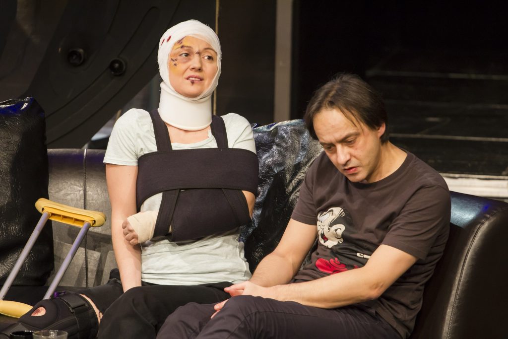 Alina Berzunţeanu şi Marius Stănescu propun cel dintâi cuplu, pe Sarah şi James, fotograful şi reporterul, omul de imagine şi omul de text, umblaţi prin toate zonele de conflict şi întorşi ea mai mult moartă decât vie, după explozia unei bombe la o margine de drum, undeva prin Irak, parcă, el depresiv şi ghiftuit de calmante după şocul întâlnirii cu spitalul în care Sarah fusese internată în comă. Cuplu motivându-şi existenţa între moralitatea de a aduce informaţie şi nerecunoscutul (probabil inconştientul) vivere pericolosamente. De cealaltă parte, Mandy şi Richard (Ioana Anastasia Anton şi Adrian Titieni), cuplu aparent nepotrivit ca vârste şi background cultural, dar garanţi cehovieni ai unei lumi care, cum am apucat-o, aşa va să şi rămână. E bine? E rău? Şi de care parte?