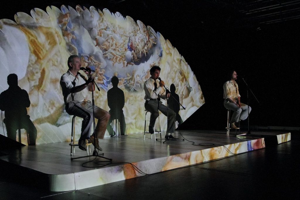 Carmen Lidia Vidu realizează un spectacol de teatru-multimedia care hipnotizează prin atmosfera sonoră și prin muzicalitatea vocilor actorilor ca într-un concert. Povestea este dublată vizual prin intermediul proiecțiilor video cu o mare încărcătură simbolică, ce îşi propun o coborâre în adâncul poveştii și în adâncul propriului eu.