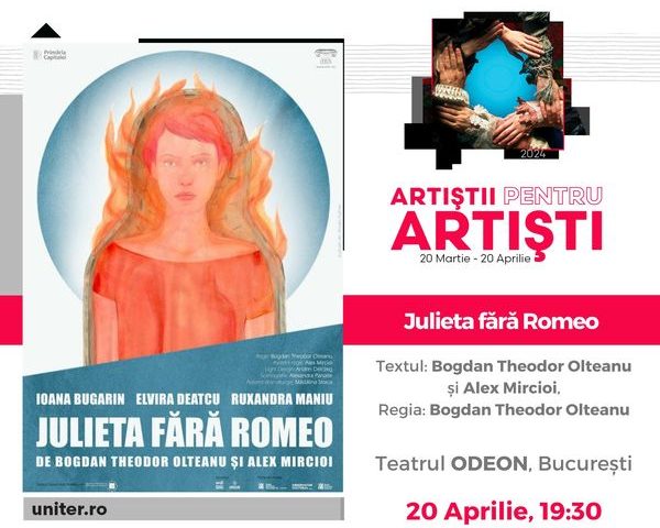 Teatrul ODEON se alătură și în acest an Campaniei UNITER Artiștii pentru Artiști, ediția 20, cu spectacolul Julieta fără Romeo de Bogdan Th. Olteanu și Alex Mircioi, regia Bogdan Th. Olteanu, programat în Sala Studio sâmbătă, 20 aprilie, ora 19.30.