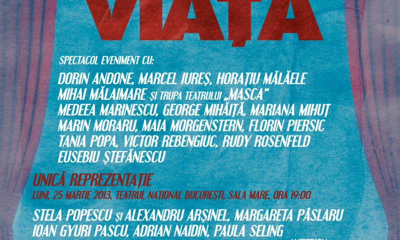 Spectacolul de caritate organizat în acest an de UNITER, sub titlul CLIPE DE VIAŢĂ, are loc luni, 25 martie, ora 19.00, la Sala Mare a Teatrului Naţional Bucureşti. O unică reprezentaţie, un spectacol emoţionant ce reuneşte un număr impresionant de mari artişti ai scenei şi poveştile lor de viaţă: